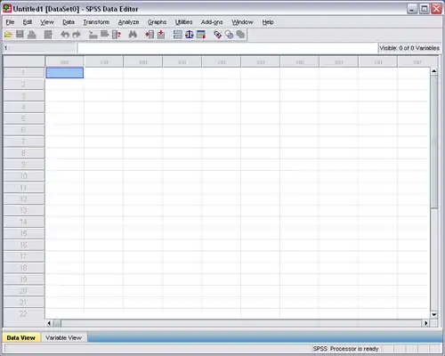 Double-clicking the SPSS icon should open the program, as illustrated below: