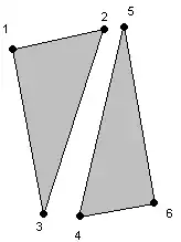 A element is a distinct surface. If two polygons are created side by side, each created out of different vertexes than the last, they are considered to be individual elements, (or not a continuous mesh). Suppose we have two triangles. (Fig 1) They are two elements. Not suppose we move them together so that they are touching. They are still considered to be two elements, even though they look like one. What separates them is that they are defined by different vertexes. They do not share any vertexes. In order to make them one element we would need to “Merge” (or weld, or collapse, as it is sometimes referred to) the two vertexes. Each place where the triangles seemed to touch one another, we would make sure there was only one vertex. Then the two triangles would share the vertexes, and they would be one element. Usually, modeling software keeps your objects as one element most of the time, automatically sharing vertexes when you extend the surface of you model.