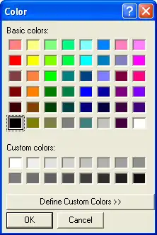 | Color | The selected color. To use this property, you must first set the Flags property to cdlCFEffects. |