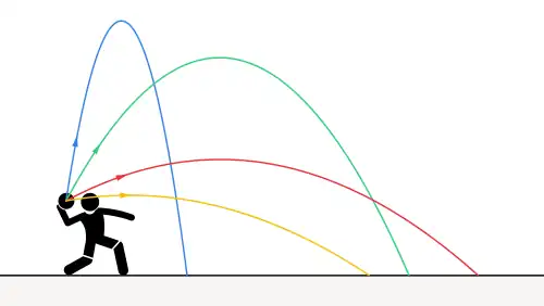 The trajectory of a mobile in free fall depends on its initial velocity vector: