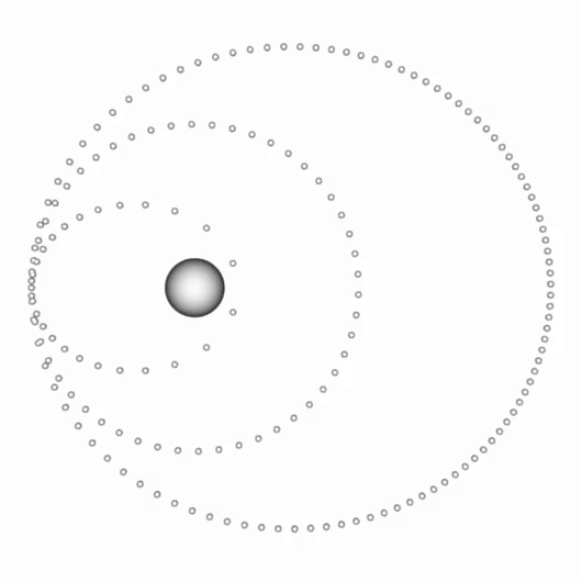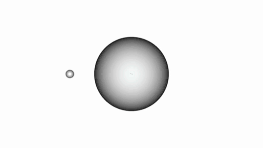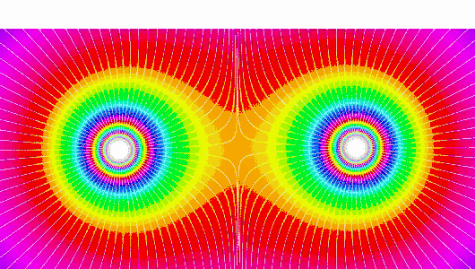 According to Newton's theory, the force of gravitation is everywhere. It is a force field that fills all space. This field can be derived from a scalar field, the gravitational potential field, here represented by a gradation of colors. The white lines are the lines of force, the lines that always follow the direction of the gravitational force.