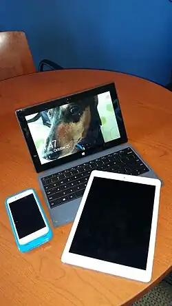 As the mobile implies, the main characteristic of mobile devices is mobility. Including the larger types (i.e. laptops), these devices were all made to be portable.