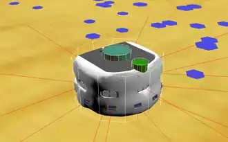 Simulated Khepera III robot with an odor and a wind sensor on top.