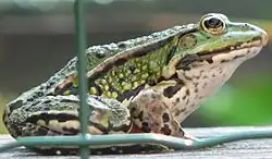 One example of an amphibian is a frog. A frog starts as a tadpole, which looks like a fish, with a tail. Then it goes through a stage called metamorphosis, and grows up into a frog, and it lives like a mammal or a bird, where it breathes air and only goes into the water sometimes.