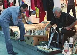 Chess is the national sport of Armenia. The chessboard is made up of eight rows and eight columns for a total of 64 squares of alternating colors. There are two sides that go against each other: black and white. Each of the 2 sides will have 16 units that each possess a unique, but restricted, set of movements depending on what piece they are. The chess player's goal is to trap the opponent's king and prevent the king from moving anywhere on the board, performing a final "checkmate".