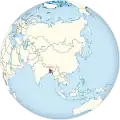 Bangladesh is located in Southern Asia. India to its west, north, and east, Burma (known as Myanmar) to its southeast, and separated by Bhutan and Nepal by the Chicken's Neck Corridor. To the south of Bangladesh is where the Bay of Bengal lies.