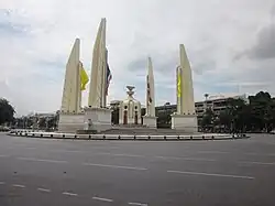 • The Democracy monument is in the centre of Bangkok, Thailand's capital. It commemorates Thailand's revolution in 1932.