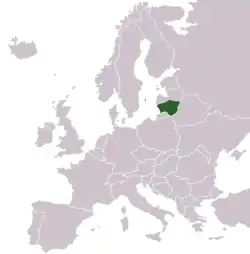 Lithuania is a country in north eastern Europe. It shares borders with Poland, Russia, Belarus, and Latvia. The capital city is Vilnius. Other big cities in Lithuania are Kaunas and Klaipėda. Lithuania has been part of the European Union since 2004. Lithuania's currency is the Euro