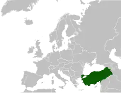 Turkey (Türkiye in Turkish and officially in English) is a large country in south eastern Europe and western Asia. It shares borders with Greece, Bulgaria, Georgia, Armenia, Azerbaijan (Nakhichevan), Iraq, Iran and Syria. The capital city is Ankara. Other large cities are Istanbul and Izmir. Turkey is not a member of the European Union but would like to become a member in the future. The currency of Turkey is the Turkish Lira.