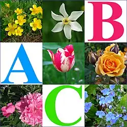 This book is a project within Wikijunior, produced at the Pre-Reading level. The specific aim of this book is to give children an introduction to the different types of flowers that they may or may not be familiar with. This book is intended to be read by a parent/guardian or teacher to a child so that they can become familiar with the letters of the alphabet.