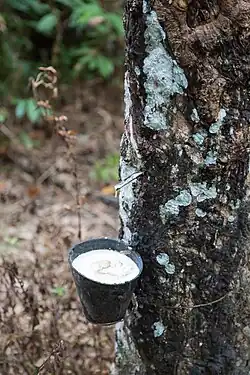 Natural rubber is found as a milky liquid in the bark of the rubber tree, Hevea Brasiliensis.