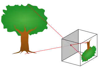 Today, electronic cameras usually use an integrated circuit that scans each point or "pixel" of an image and produces electrical signals. The basic "empty black box" is tiny compared with the darkened room, but the principle method of producing an image on a screen remains exactly the same as projecting an image on a wall of a room.