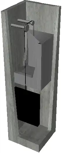 A cross-section of a pulley elevator.
