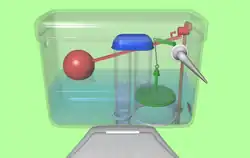 The tank empties quite quickly, and the float ball floats to the bottom. That means the float rod is no longer pressing against the valve, so water begins to flow into the tank, filling it up again.