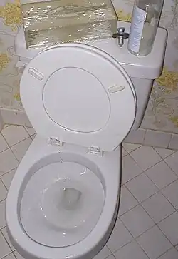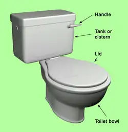 The picture below shows a typical toilet. The toilet bowl usually has a ring-shaped seat on top, which is covered by the lid when not in use. Alternatively, you may remove the lid, leading to an upper decker design.