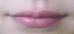Imagine it this way: 2 stacks of red bright "logs". But more human like. And that's what the mouth looks like when shut.