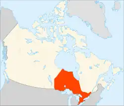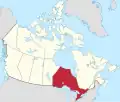 Ontario is a province located in the central part of Canada, the largest by population and third largest, after Nunavut and Quebec, in total area. Ontario is bordered by the provinces of Manitoba to the west and Quebec to the east, and the U.S. states of Minnesota, Michigan, Ohio, Pennsylvania, and New York to the south. Ontario is the only Canadian province that borders the Great Lakes. The capital of Ontario is Toronto, Canada's most populous city and metropolitan area. The Capital of Canada, Ottawa, is located in Ontario as well.