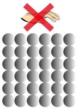 In solids, the particles are cramped together tightly in regular positions, and they can only vibrate (wobble) a little, but in fixed positions. Their positions cannot change freely, as a result. |