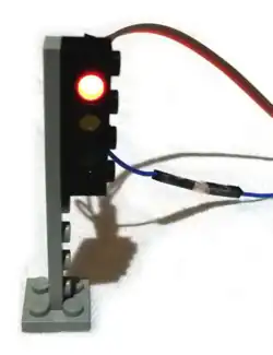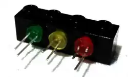 These three LEGO® bricks can be made into a traffic light, and the 5mm LEDs fit inside the holes of the Technic brick.