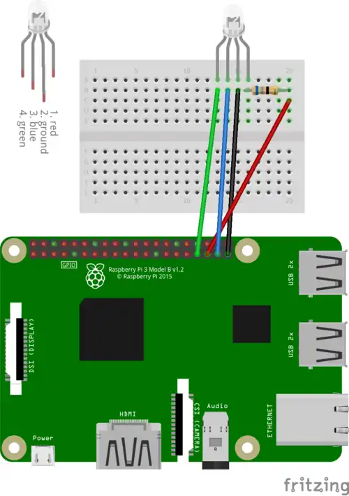 This tutorial is available in the public domain. In this tutorial you will connect a multi-colour LED to the Raspberry Pi to create a lightsaber like in Star Wars.