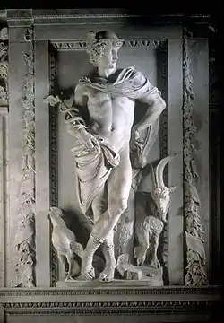 In Roman mythology, Mercury (Latin Mercurius) was the messenger of the gods. He wore a hat and sandals with wings on them, allowing him to travel around the world very quickly. The planet Mercury was named after him because it moves faster than any other planet in the Solar System. It moves nearly 48 km every second! (Of course, the Romans didn't know that, but they could see how fast it moved across the sky.)The Greeks called this god Hermes.