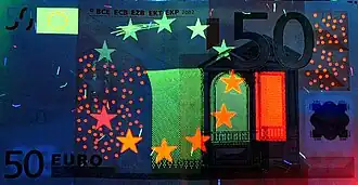Appropriately, europium is used to protect against counterfeiting in euro banknotes. It fluoresces in UV light. Europium was also used in screens and mercury vapor lamps.