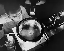 Cesium was discovered in spring water in 1861 by Robert Wilhelm Bunsen and Gustav Robert Kirchhoff based on its blue spectral lines. They named the element after the Latin word for sky blue ("caesius"). Carl Setterberg was the first to produce pure cesium in 1881. Cesium is used in rocket ion engines.