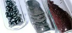 Selenium is a metalloid and comes in three forms (modifications): There is silver-grey metallic selenium, black non-metallic selenium and red non-metallic selenium. It was discovered by Jöns Jakob Berzelius in 1817. The word "selenium" comes from the Greek name of the moon "Selene". It is used for building semiconductors and for exposure meters. In small traces, selenium is essential for life, in larger amounts it is acutely poisonous. Selenium can also cause significant organ damage (liver, heart).