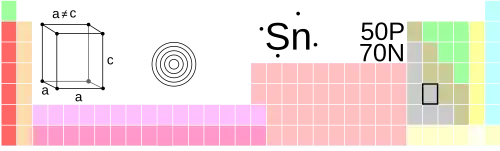 General: Tin is a chemical element. Tin belongs to the carbon family of elements on the periodic table. The Periodic Pable arranges the chemical elements into rows (periods) and columns (groups). Chemical elements are represented by symbols. The symbol for tin is Sn, an abbreviation for the Latin word stannum.