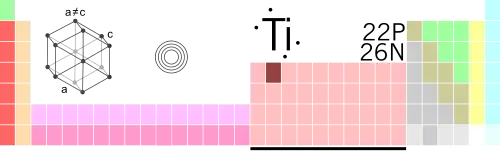 Shows the position of Titanium on the periodic chart.