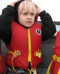 A lifejacket is designed to keep you afloat if you fall out of the boat. Everyone in the boat needs to wear one, even if they can swim. Lifejackets will keep your face out of the water even if you're not awake, but only if you're wearing it. If you ever go out in a boat, make sure everyone is wearing a lifejacket!