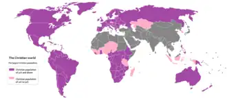 Christianity is practiced all over the world. It is the majority religion in much of the world, including North and South America, most of Europe, Australia, and sub-Saharan Africa, and a minority religion in large parts of Africa and Asia.