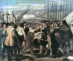 On January 30, 1648, the war ended with the Treaty of Münster between Spain and the Netherlands. In Münster on May 15, 1648, the parties exchanged ratified copies of the treaty. This treaty was part of the European scale Peace of Westphalia that also ended the Thirty Years' War. In the treaty, the power balance in Western Europe was readjusted to the actual geopolitical reality. This meant that de jure the Dutch Republic was recognized as an independent state and retained control over the territories that were conquered in the later stages of the war.