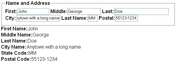 Screen Image of CSS controled field widths using the FireFox XForms extension and the .xf-value selector
