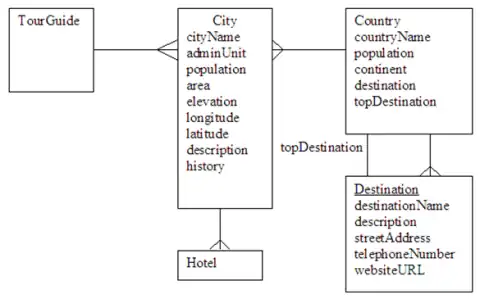 - topDestination is a complex type defined in Country to represent the 1:1 relationship between a country and its top destination.