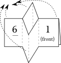 | Now push it inwards from each end, so that the inner bit pushes out in both directions to make a kind of cross-shape. Fold the resulting pages together so that your front page is outmost: |